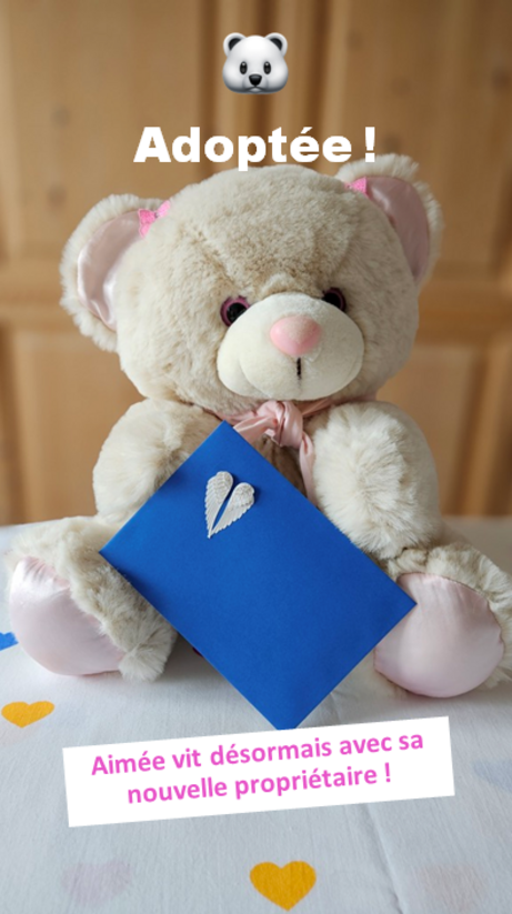 AIMEE : Oursonne de grand format, env. 25-30 cm, accompagnée d'un message de vos anges : CHF 35.- / EUR : 35,00 (frais de port en sus). *** Article non disponible ***