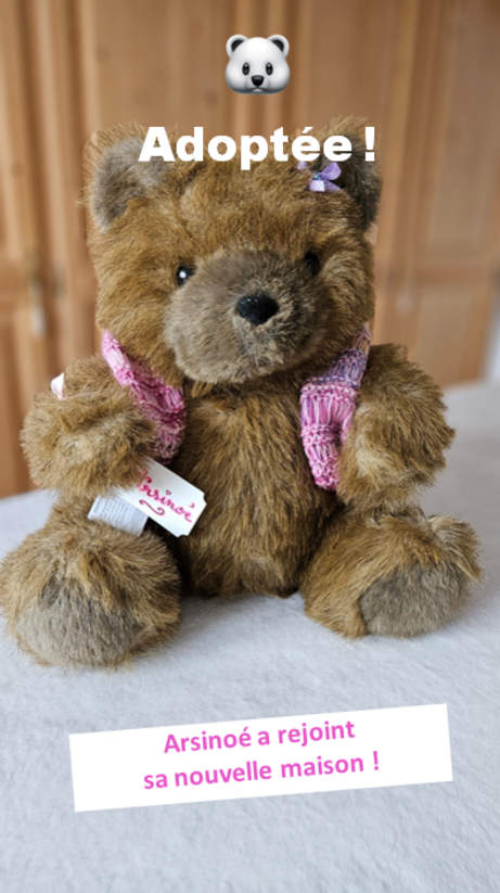 ARSINOE : Oursonne de grand format, env. 25-30 cm, accompagnée d'un message de vos anges : CHF 35.- / EUR : 35,00 (frais de port en sus). *** Article non disponible ***